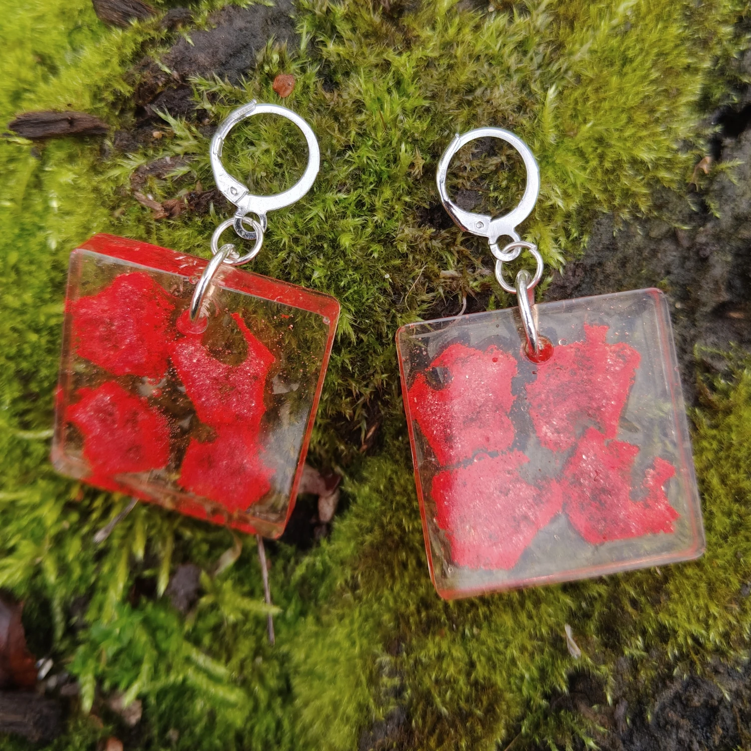 Kolczyki wykonane z żywicy epoksydowej z imitacją arbuza. Ręcznie robiony.