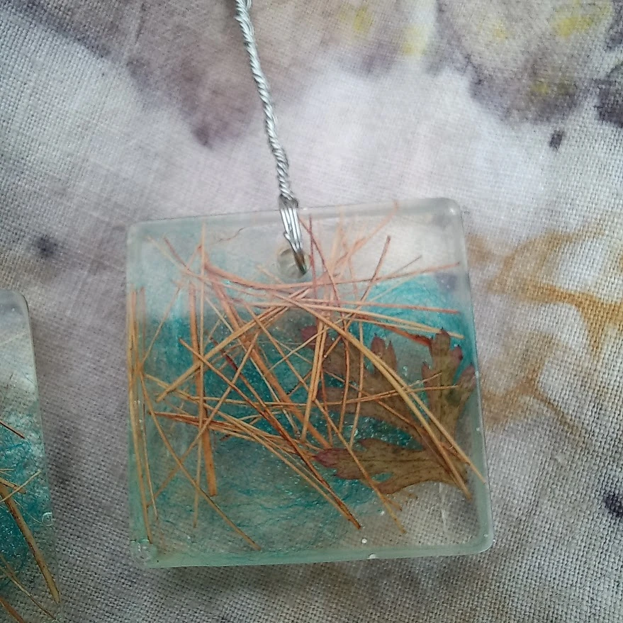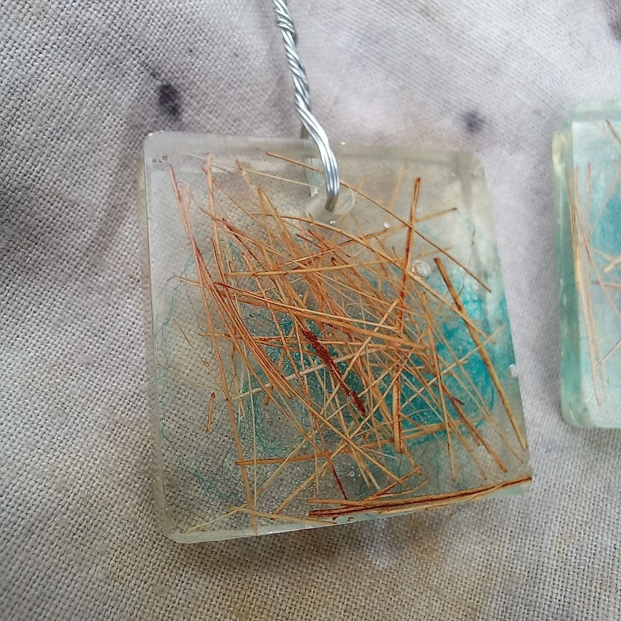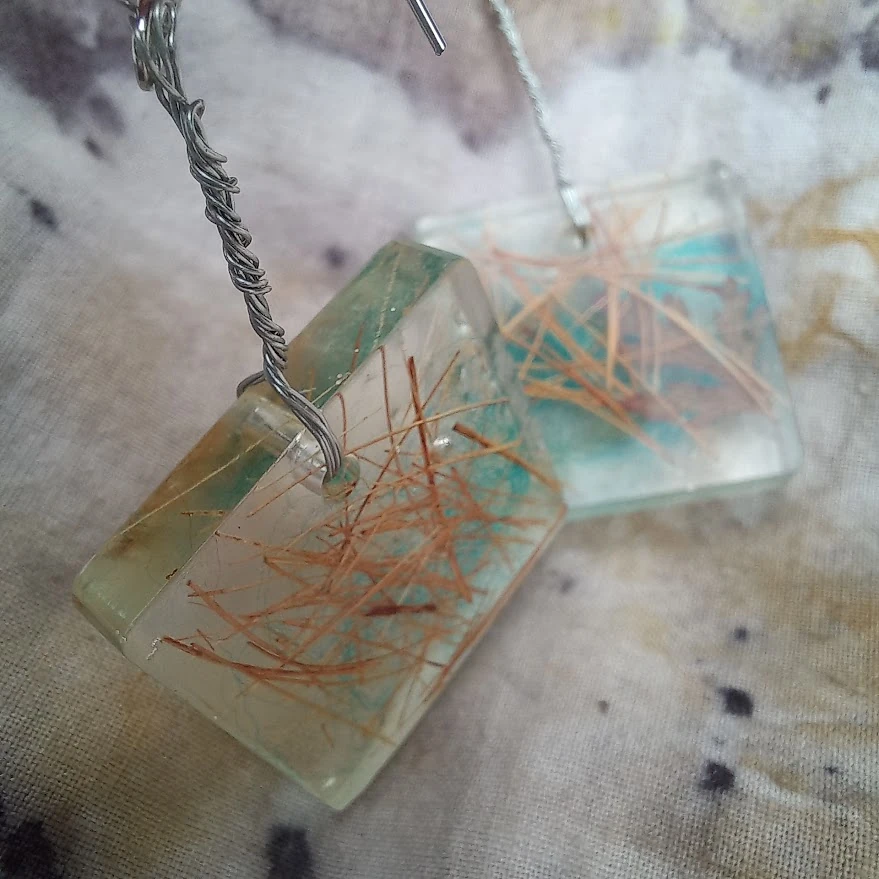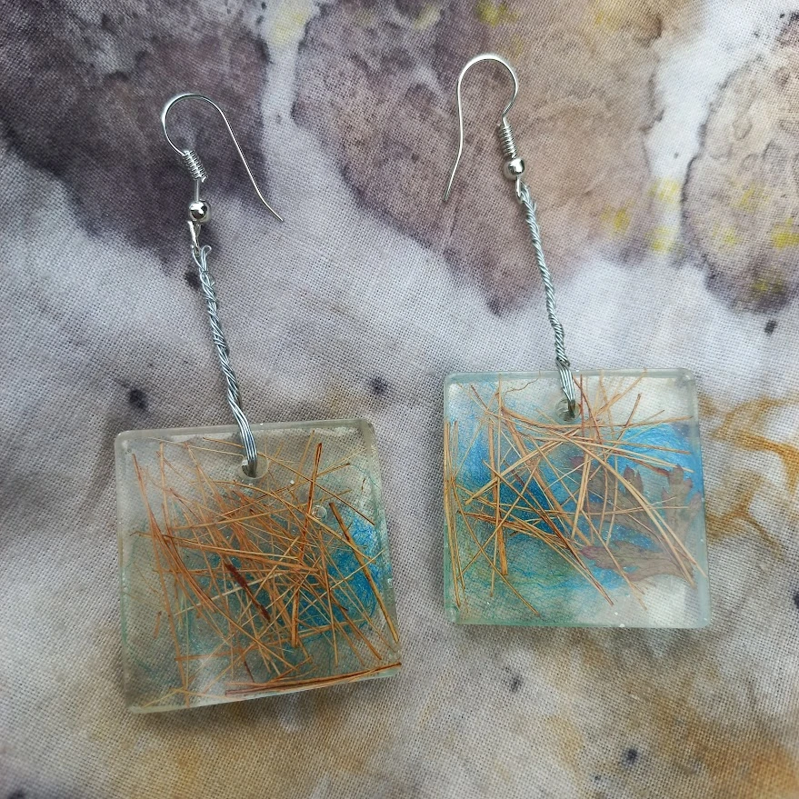 Kolczyki wykonane z żywicy epoksydowej z zatopionymi elementami przyrody. Ręcznie robiony.