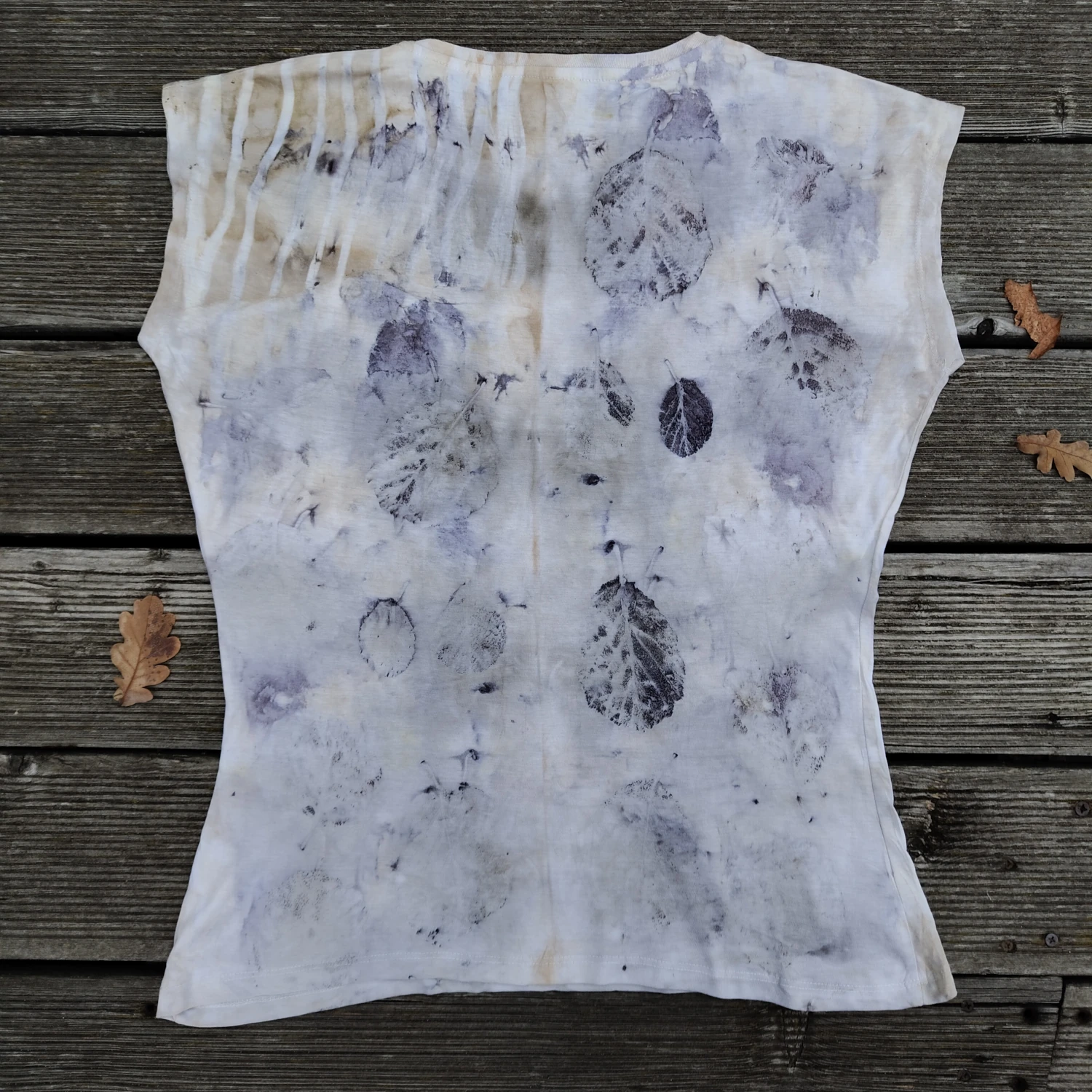 Metryczka, czyli jakich liści użyłam: olcha + sitodruk z polną rośliną