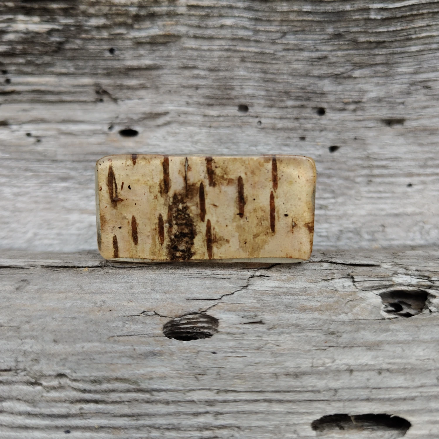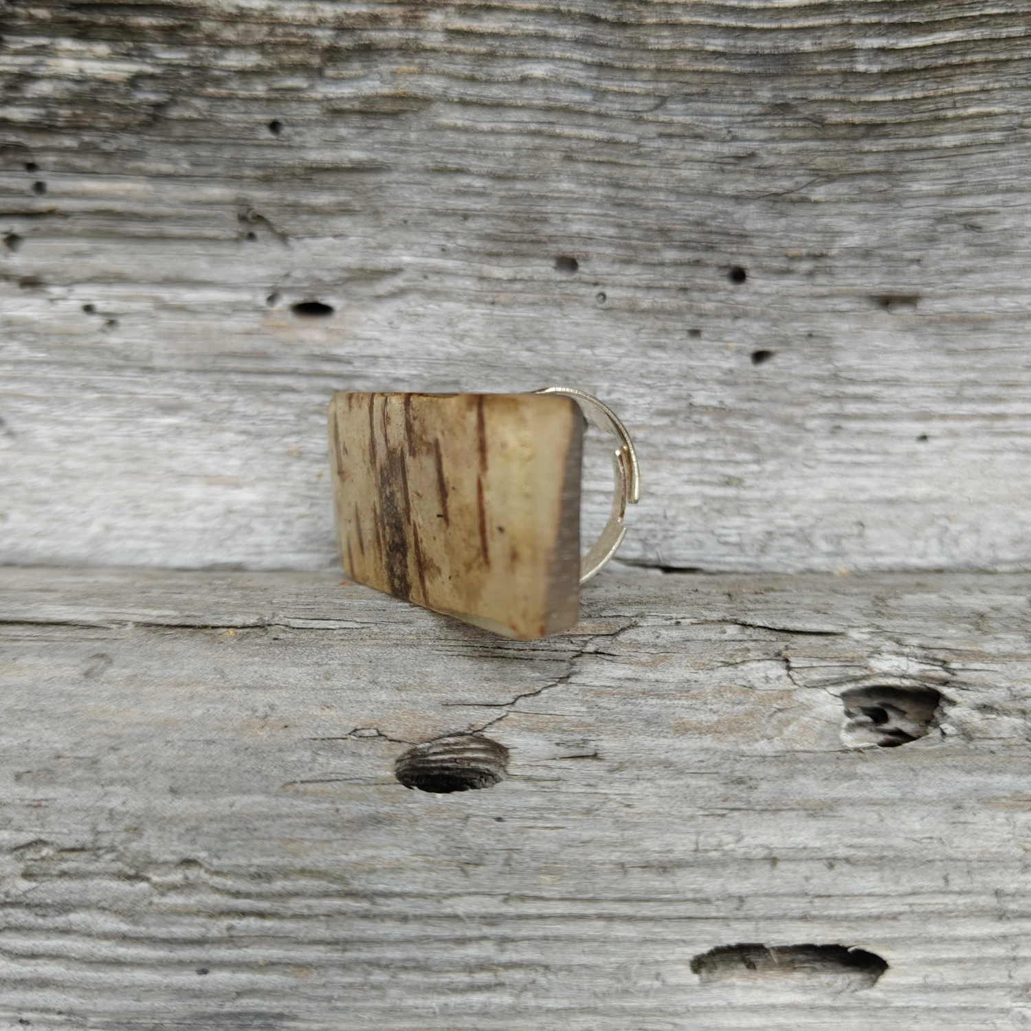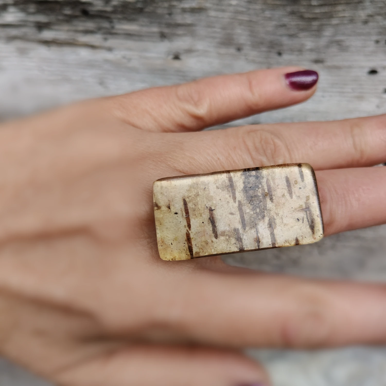 Unikatowy pierścień wykonany z żywicy epoksydowej z zatopioną korą brzozy, duży. Ręcznie robiony.