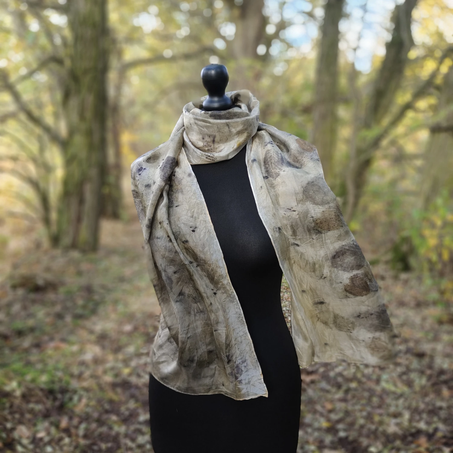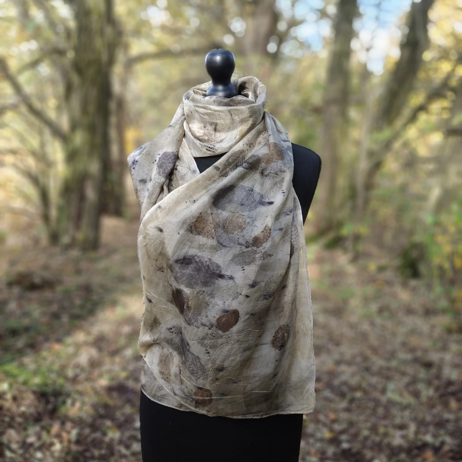 Wyjątkowy szal wykonany w 100% z jedwabiu naturalnego, cienki i długi z ecoprintem z liśćmi grabu. Można owinąć się dwa razy i mieć zawsze go przy sobie. Na różne okazje – na co dzień i na wydarzenia.