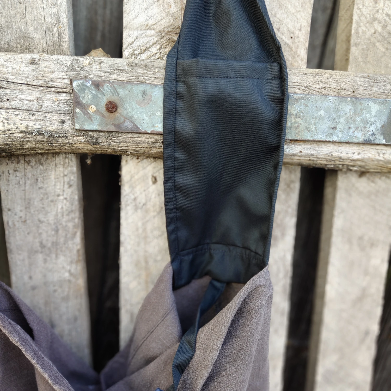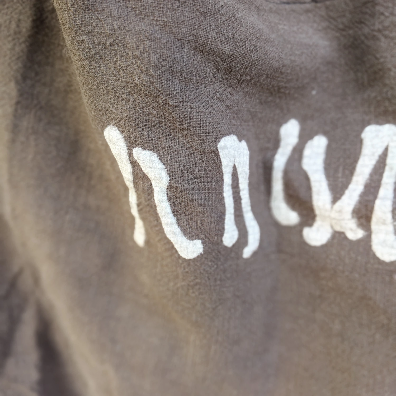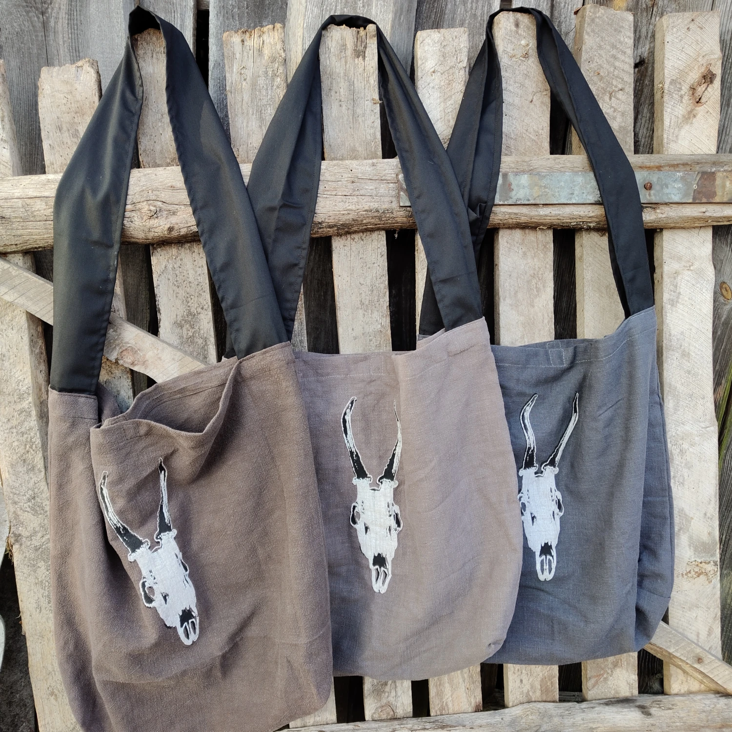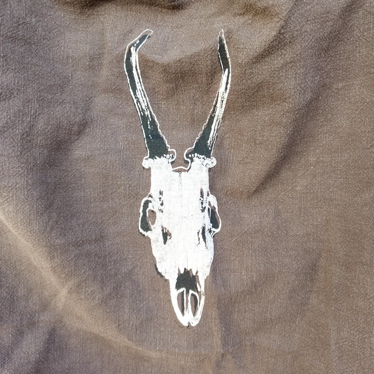 Oryginalna i ciekawa torba z sitodrukiem farbą wypukłą z czaszką sarny z jednej strony i z kostkami z drugiej. Na pasie znajduje się kieszonka na komórkę a w środku kieszonka na klucze. Torba uszyta na bazie toreb noszonych przez mnichów tybetańskich.